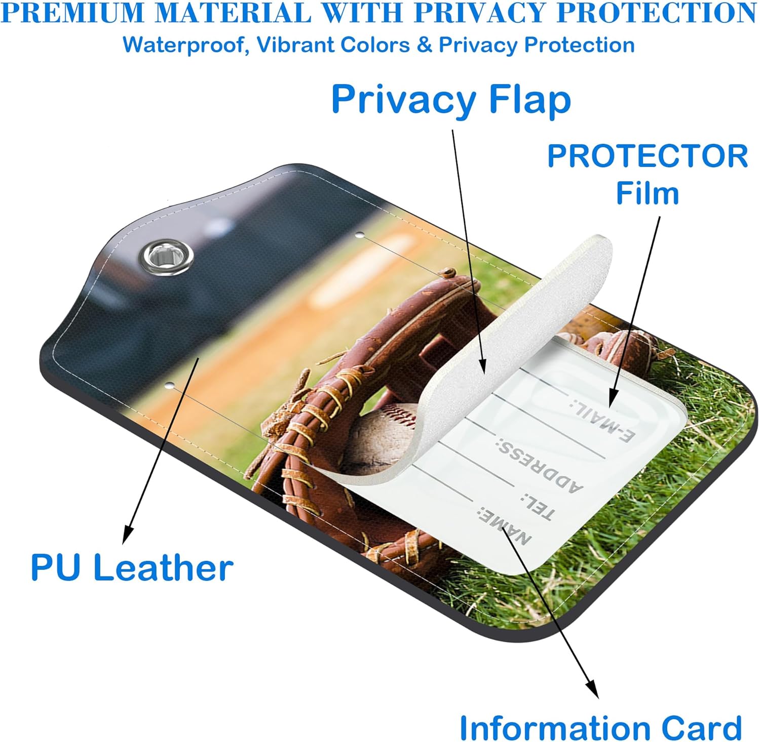 Old Baseball and Glove on Baseball Grand Luggage Tags for Suitcases Leather Travel Tags for Luggage ID Label with Privacy Cover and Stainless Steel Loop for Men Women Suitcase Backpack, Set of 2