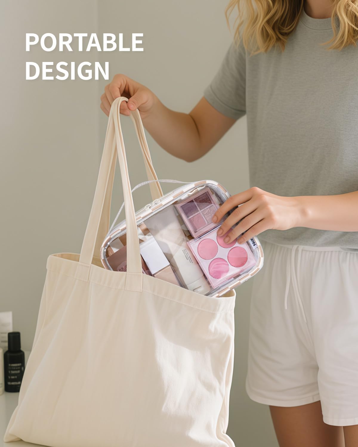 Narwey TSA Approved Clear Toiletry Bag for Travel, Waterproof PVC Clear Makeup Bags, Portable Compact Cosmetic Bag Make Up Organizer, Airport Airline Quart Size Compliant Bag (Light Checkerboard)