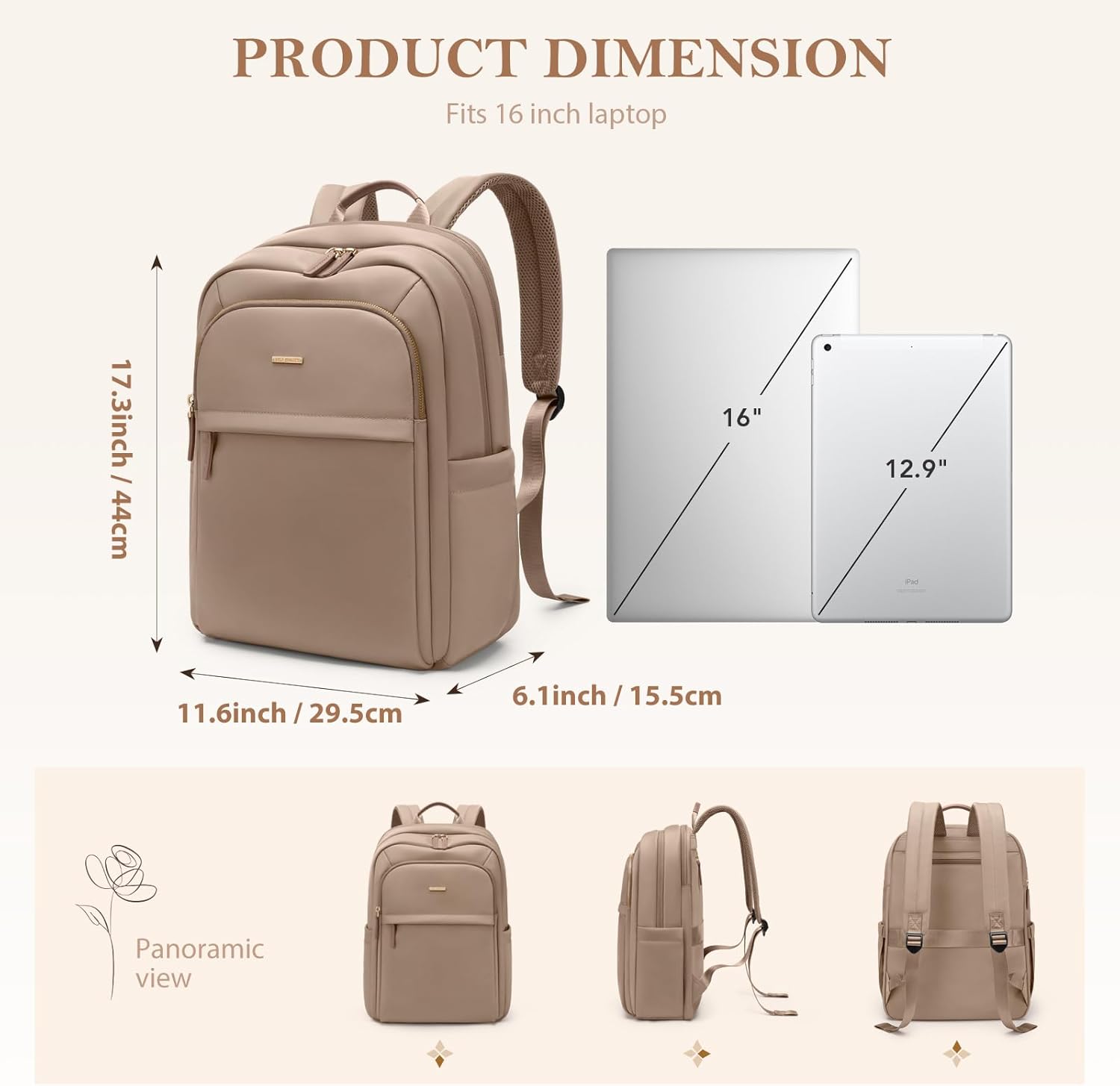 Travel Backpack for Women Personal Carry On Bag Business Weekender Hiking Multilayer Laptop Bag,16 Inch,Brown