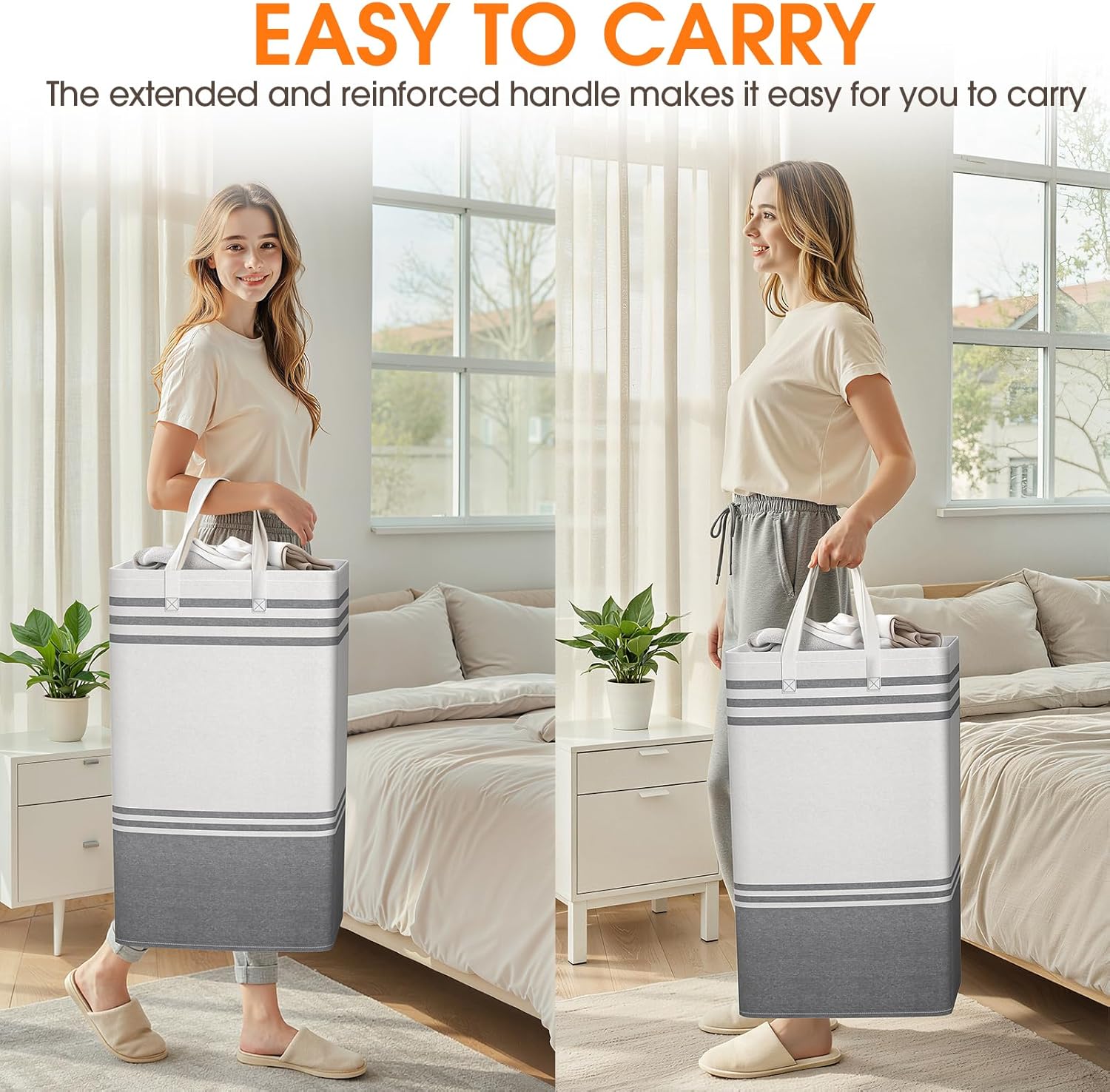 2 Pack Large Home Laundry Basket, Laundry Hamper, Freestanding Waterproof Dirty Clothes Bag, Tall Clothes Hamper - Extended & Reinforced Handles for College Dorm, Family (Light Grey/88L)