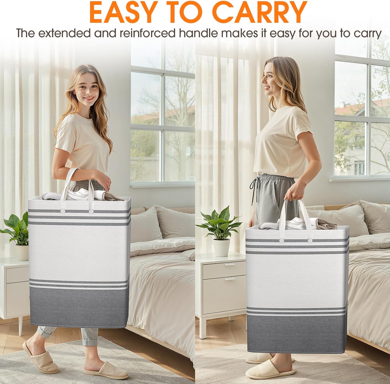 - [Portable Long Reinforced Handles] Each laundry bag has two extended and reinforced handles, making it convenient for women, men, and children to use with one or both hands. The handle stitching of EpicTotes laundry bag has been reinforced, making it less prone to tearing or damage. The high-quality handle design of the dirty clothes basket makes it more effortless for you to lift the clothes from the bedroom to the laundry room with the dirty clothes basket