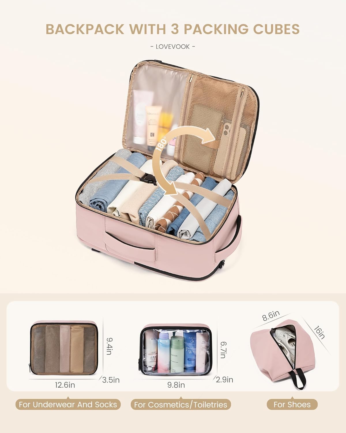 LOVEVOOK Travel Backpack for Women & Men, 60L Large Carry On Backpack Airline Approved, TSA Personal Item Weekender Bag, Water Resistant Laptop Backpacks with 3 Packing Cubes for Travel Essentials