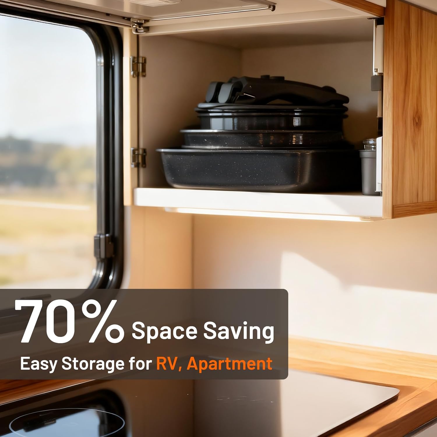 - 【STACKABLE WITH REMOVABLE HANDLE】Our detachable handle pots and pans is upgraded with better grip and an ultra-tight lock—even when lifting a pot full of soup, it stays completely stable without wobbling for safer use. Easy to organize and stack in cabinet or drawer - 70% Space saving for RV or Apartment small kitchen.