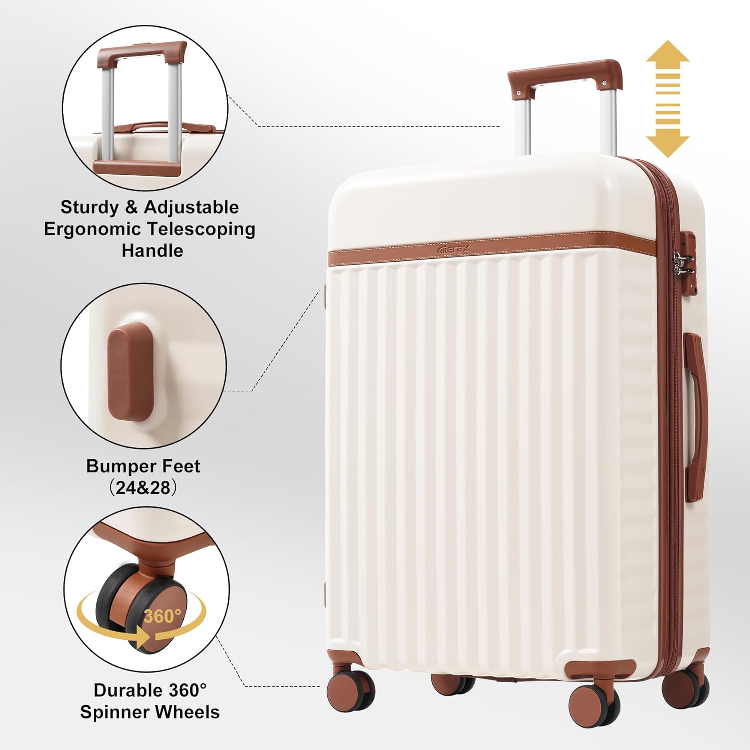 Merax Luggage Sets Front Opening, 2 Piece Hardshell Suitcase with Spinner Wheels and Bags,Lightweight Carry on Luggage with USB Port,20+24,White and Brown