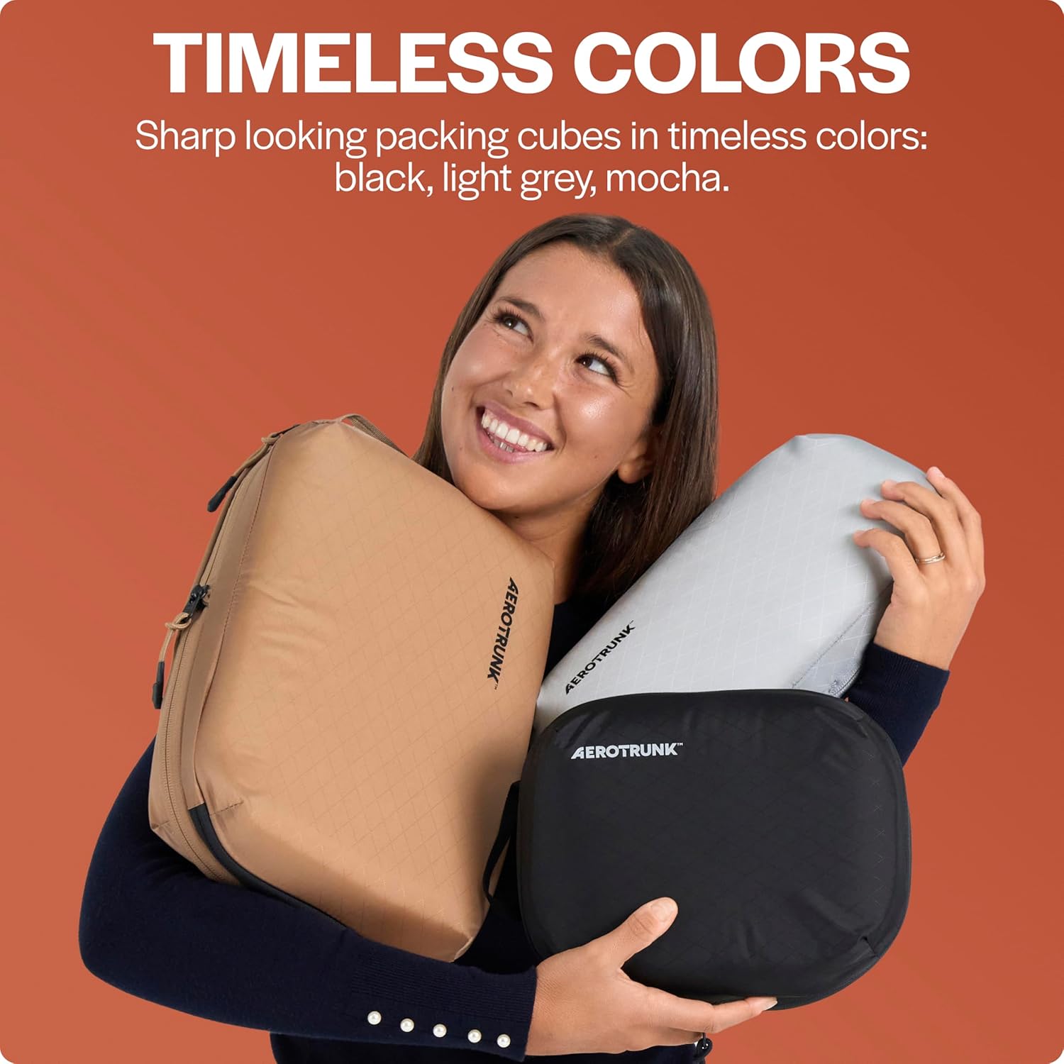 Aerotrunk Ultralight Compression Packing Cubes - Lightweight Travel Organizers for Suitcases and Luggage (6-Pack, Light Grey)