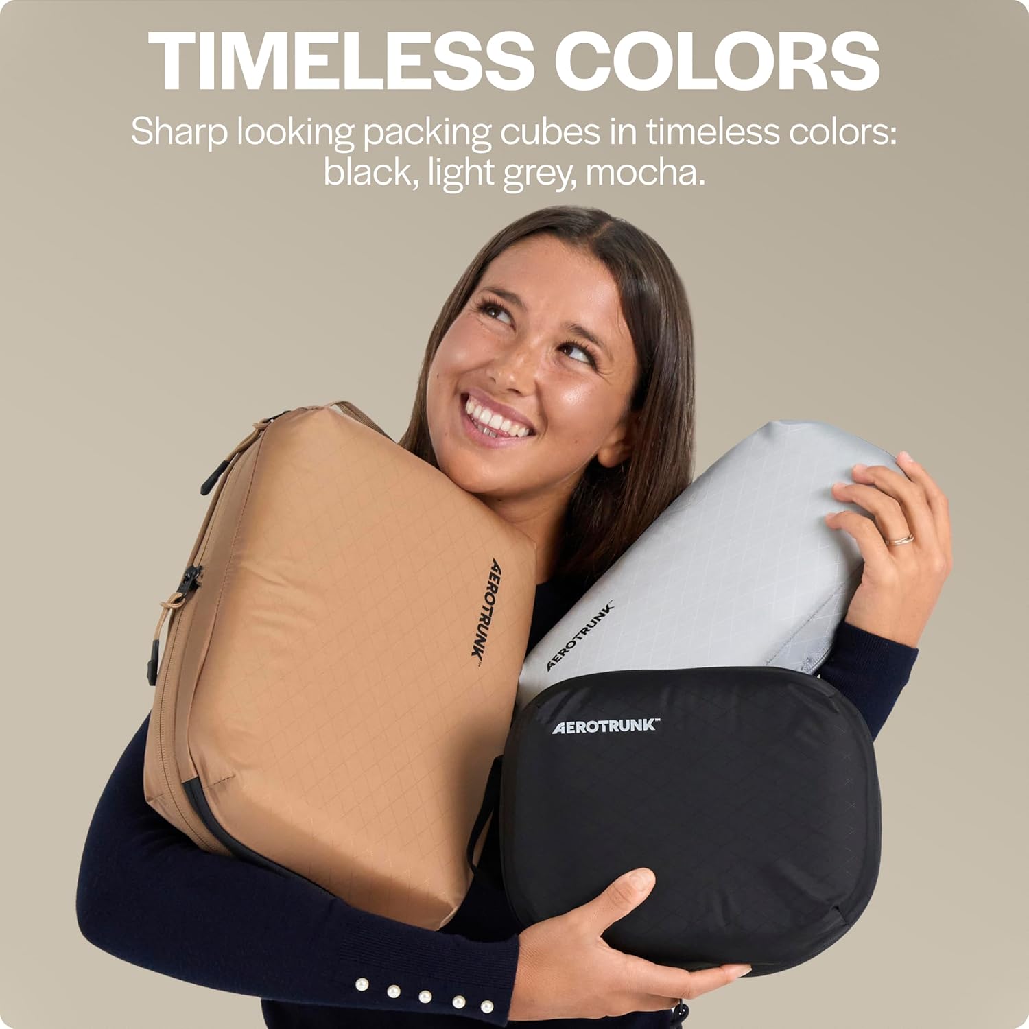 Aerotrunk Ultralight Compression Packing Cubes - Lightweight Travel Organizers for Suitcases and Luggage (3-Pack, Black)