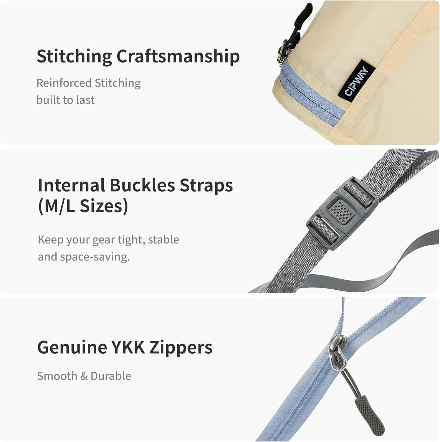 - Lightweight 100% Nylon: The travel packing organizer is made from 210D nylon with reinforced stitching, which brings tear-resistant and durability. The YKK zippers are smooth and tough, making them a lasting travel essential.