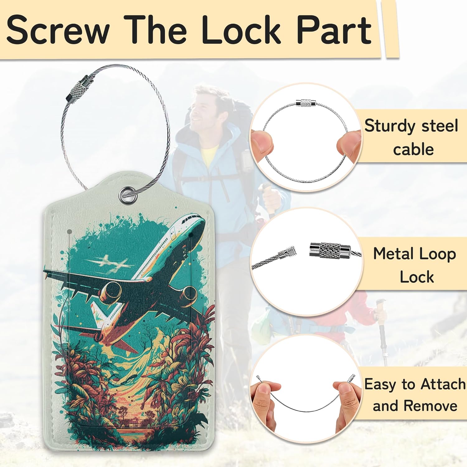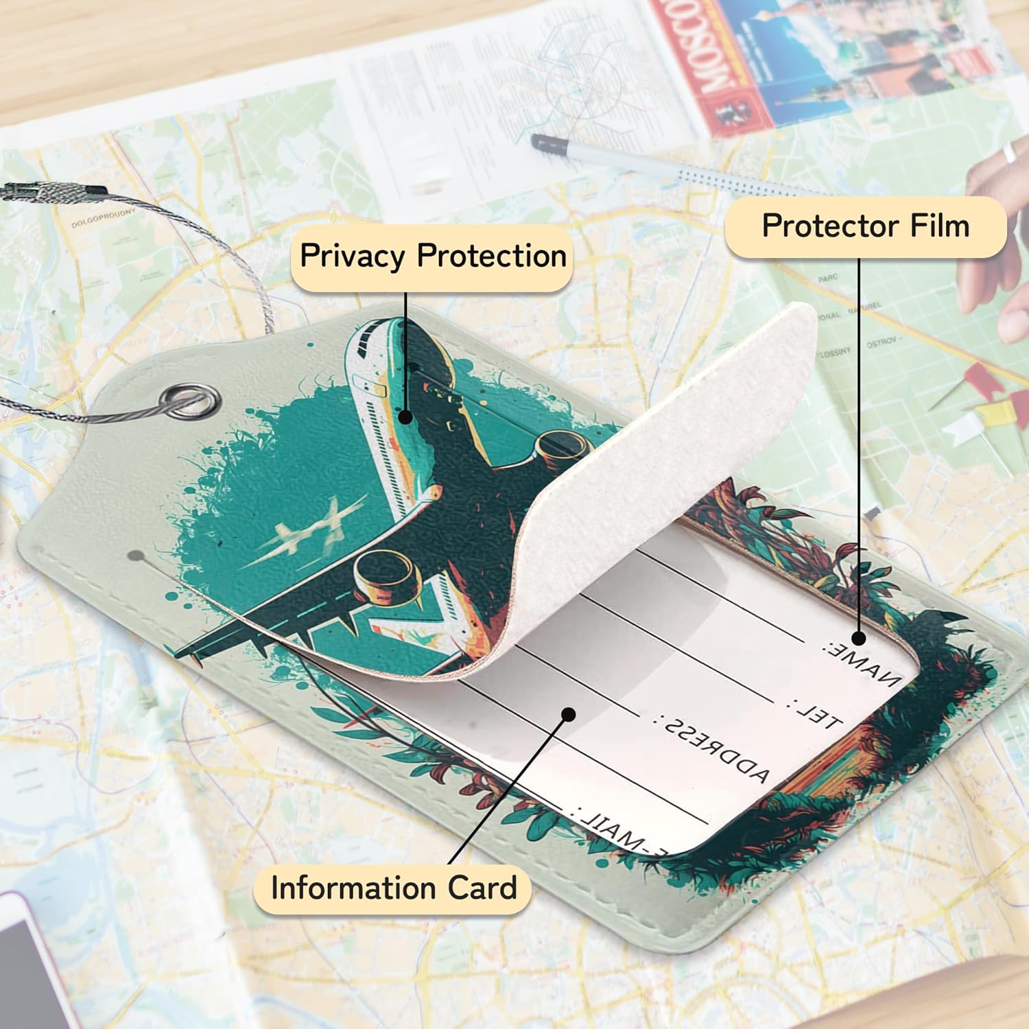 Airplane in The Sky Luggage Tags for Suitcase,3 Pack Luggage Tag Leather Privacy Cover ID Label with Stainless Steel Loop for Women Men