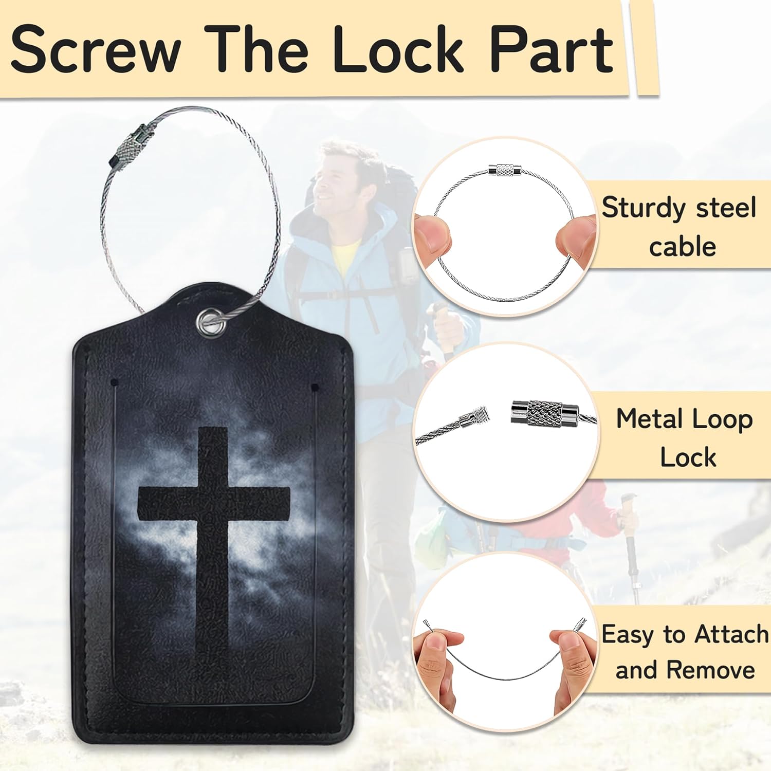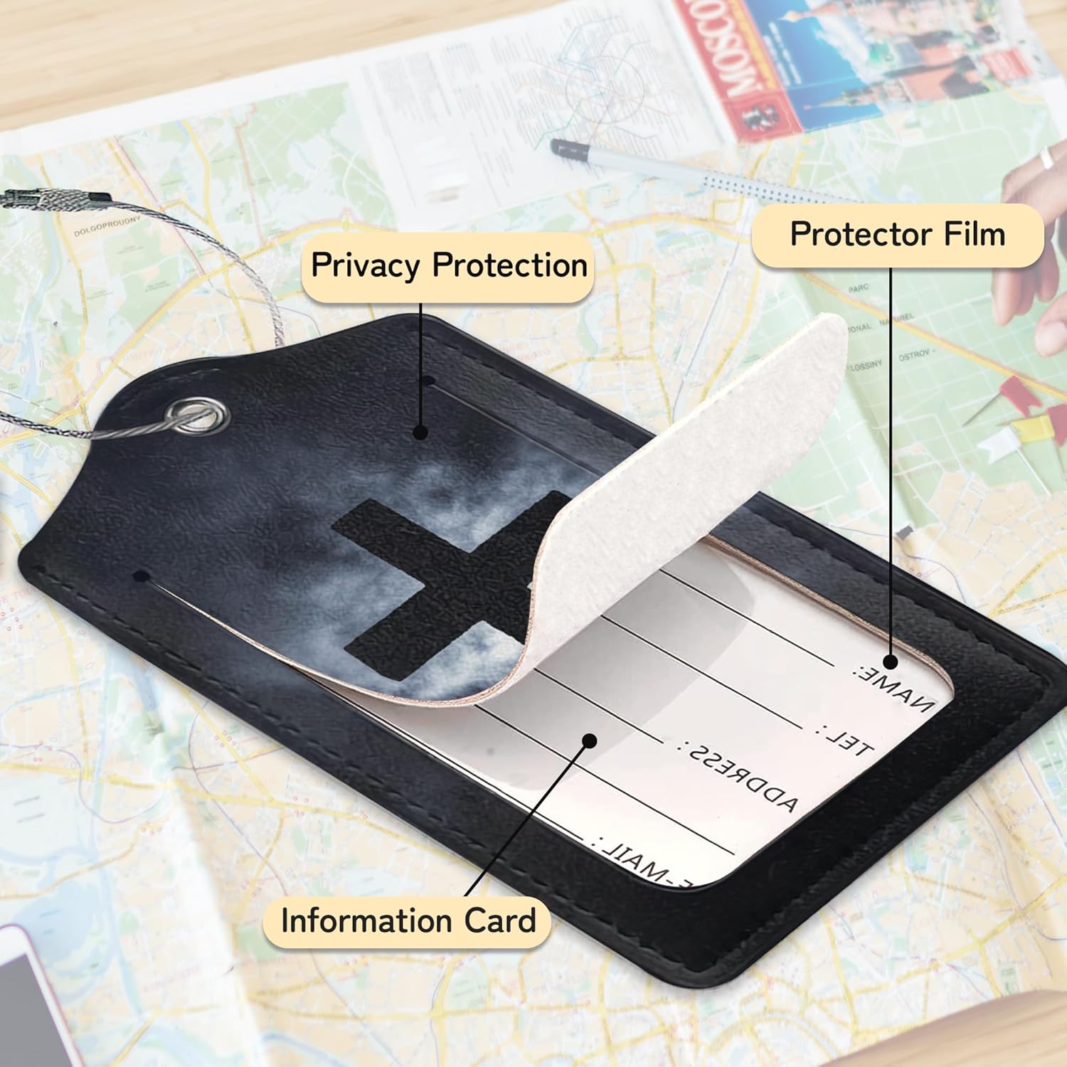 Cross Luggage Tags for Suitcase,3 Pack Luggage Tag Leather Privacy Cover ID Label with Stainless Steel Loop for Women Men