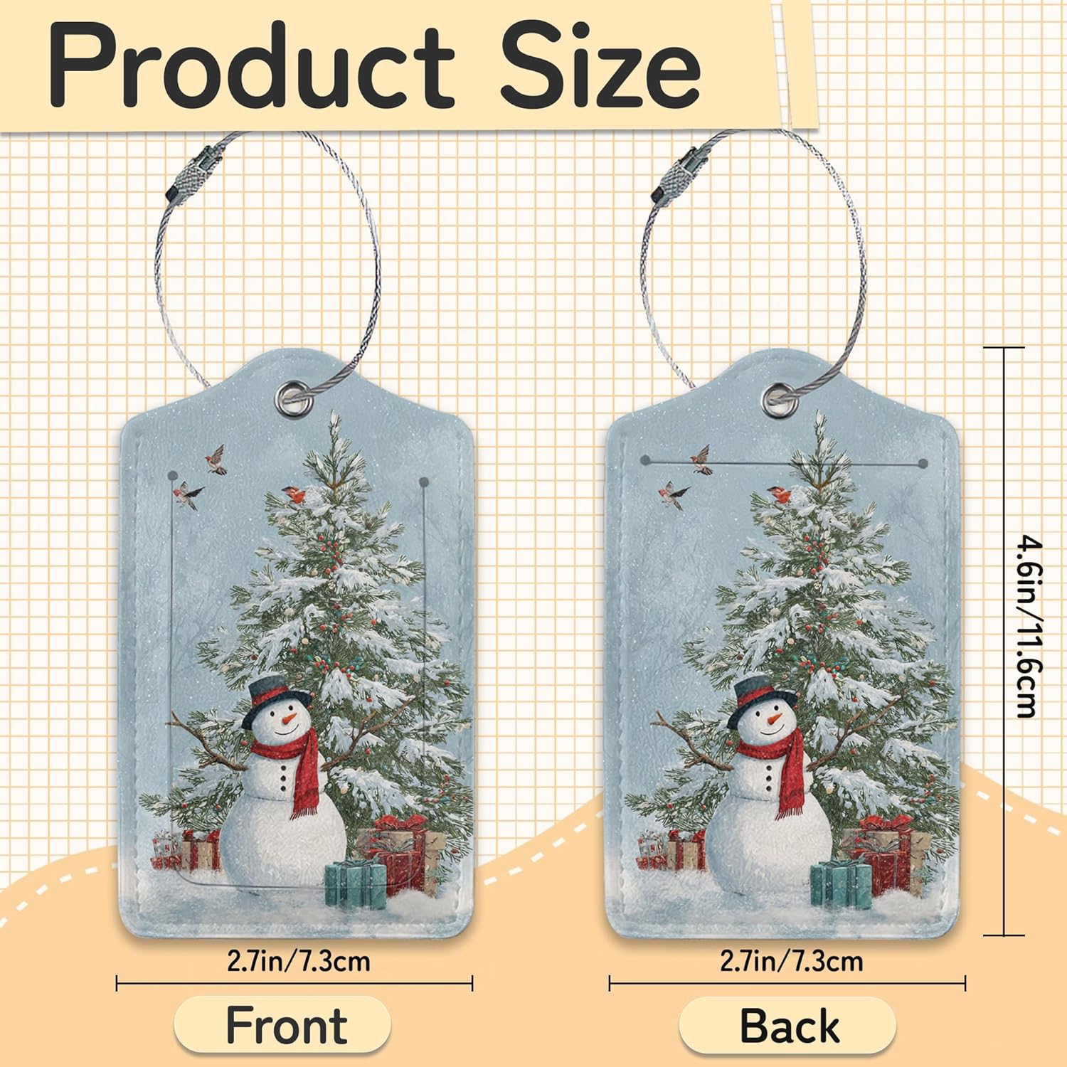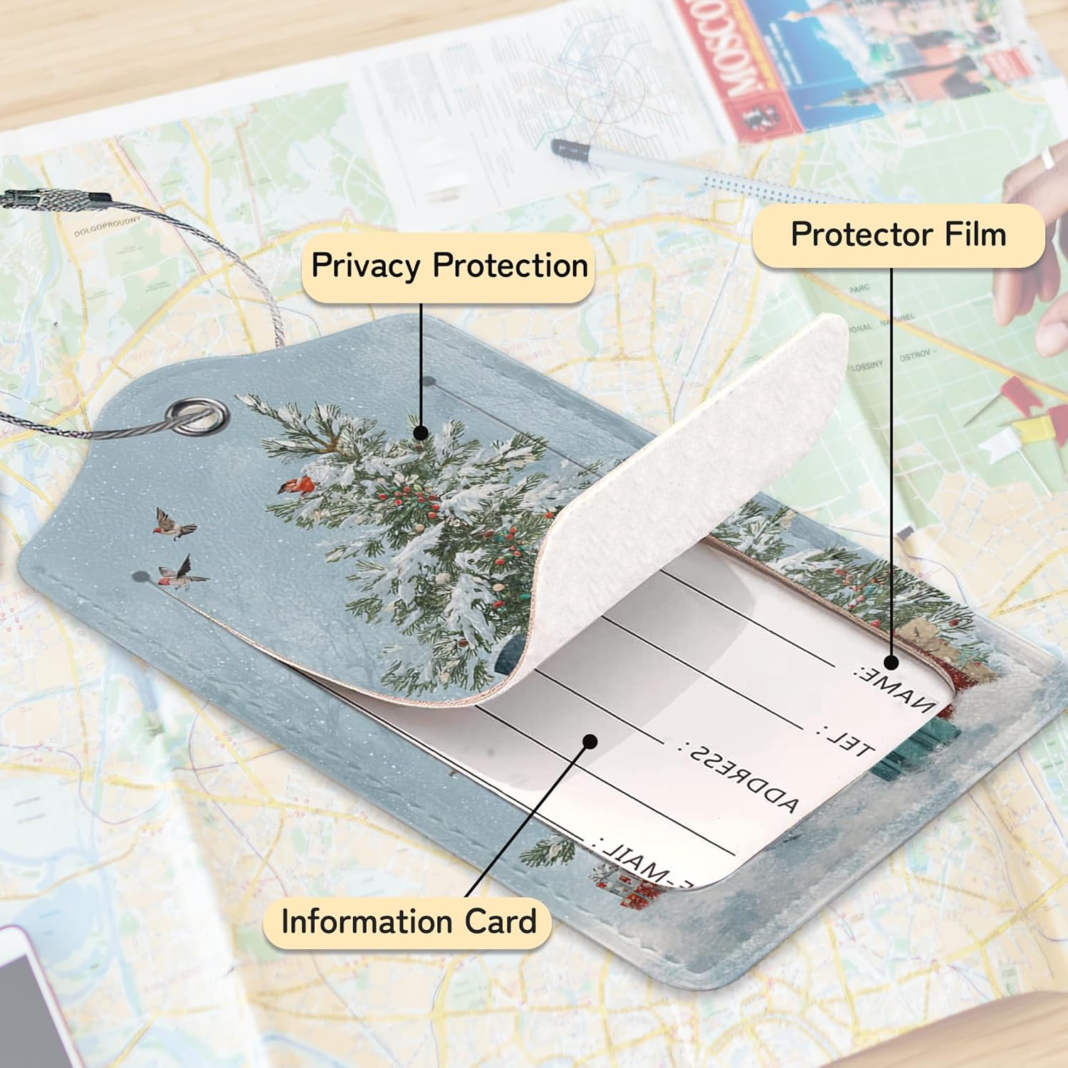 Merry Christmas 3 Pack PU Leahter Luggage Tag with Stainless Steel Loop,Christmas Tree Travel Suitcase Labels with Privacy Cover ID Label Quickly Spot for Bags