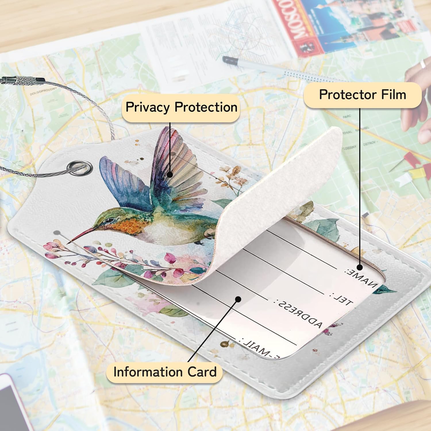 - 【Privacy Protection】The Luggage tag designs with a privacy back cover to fully hide your owners information.Thanks to the added transparent sandwich design, it protects your information from rain and other intrusions while traveling