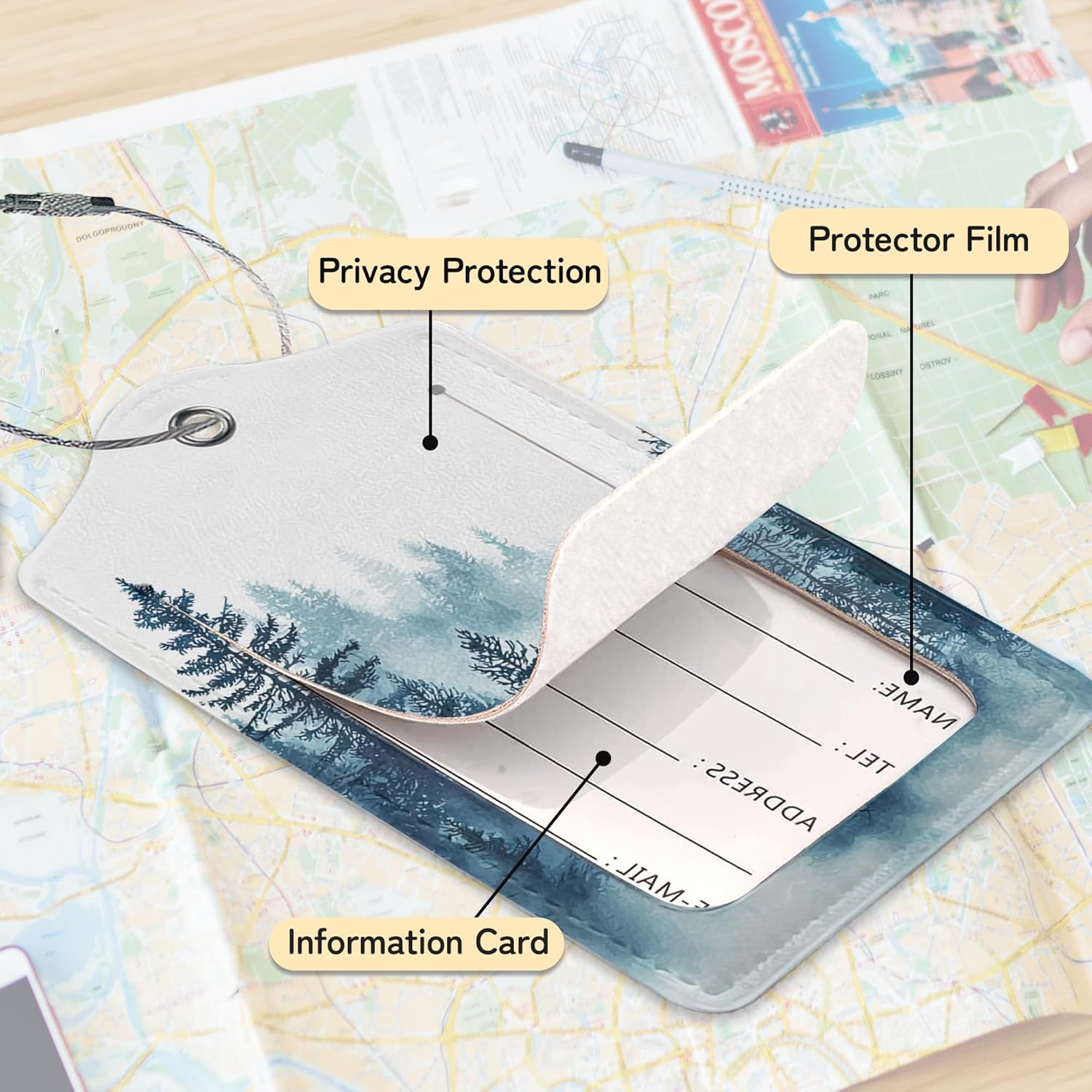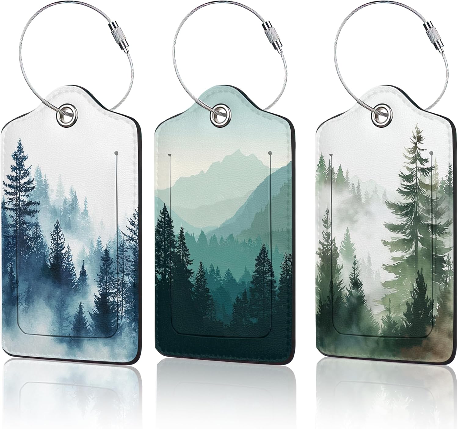 3 PCS Misty Forest Landscape Luggage Tags,Suitcase Tags Privacy Cover ID Label with Stainless Steel Loop and Address Card for Travel Bag Suitcase