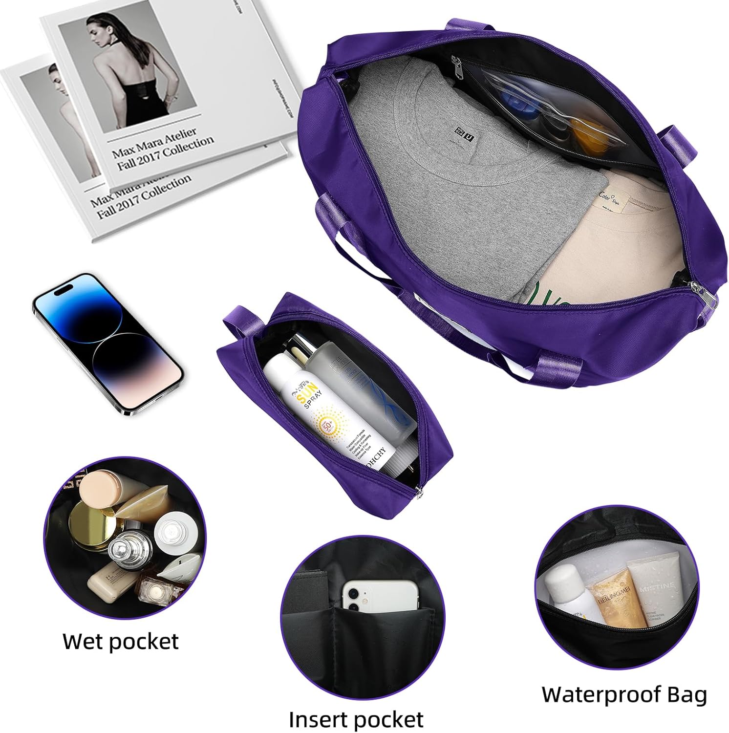 - 【Multi-functional Weekender Bag】The travel duffel bag is made of polyester fabric, which is mildly water-resistant. The duffel bag is also designed with a back sleeve, so you can conveniently attach it to the retractable luggage handle.