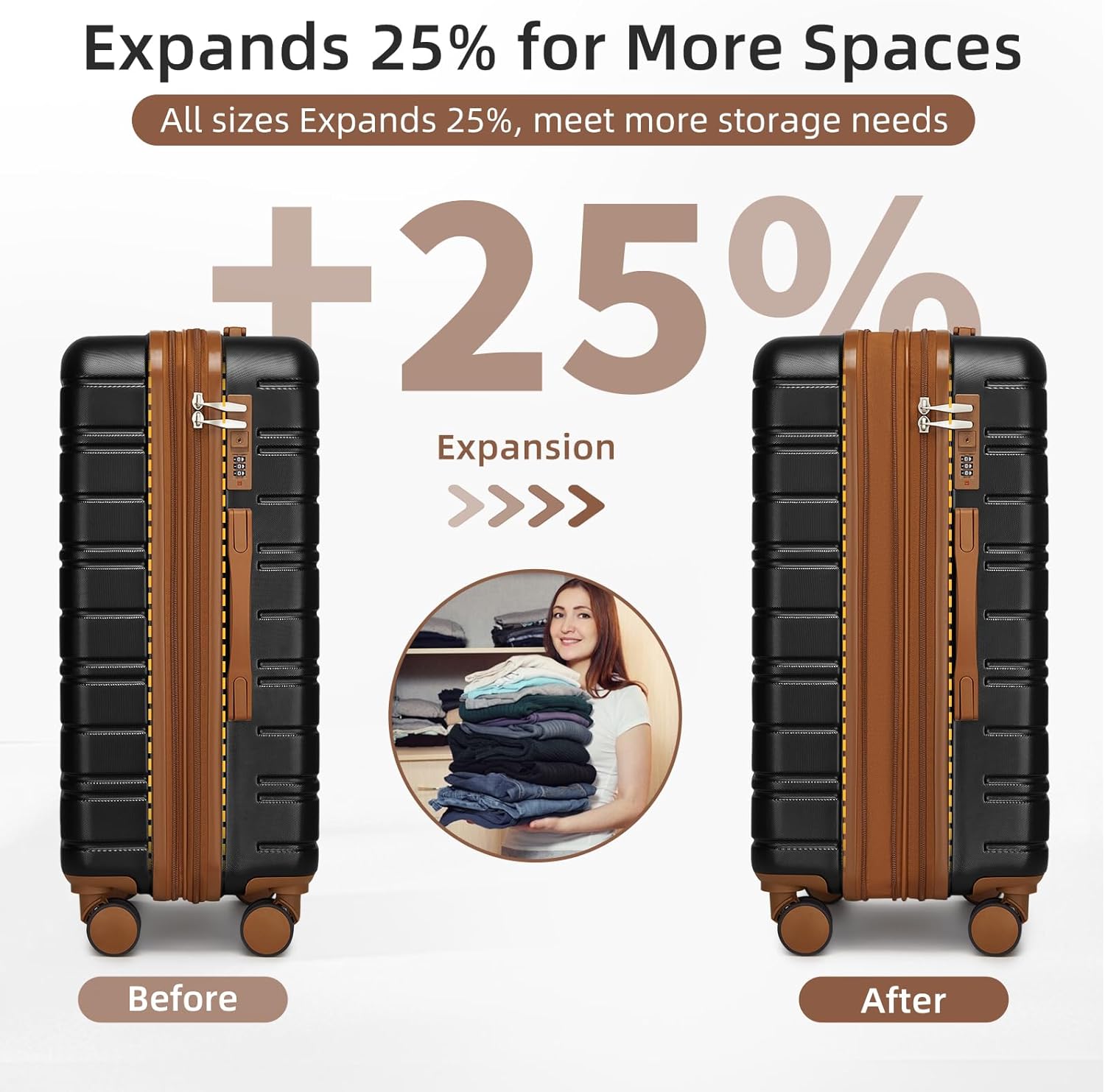 - 【5 Piece Suitcase Sets】The 5-piece set includes a 20" carry-on luggage, a 24" checked suitcase, a 28" large luggage, a weekender duffel bag, and a toiletry bag. All the luggage and the duffel bag are equipped with an expansion zipper that can add 25% more packing space