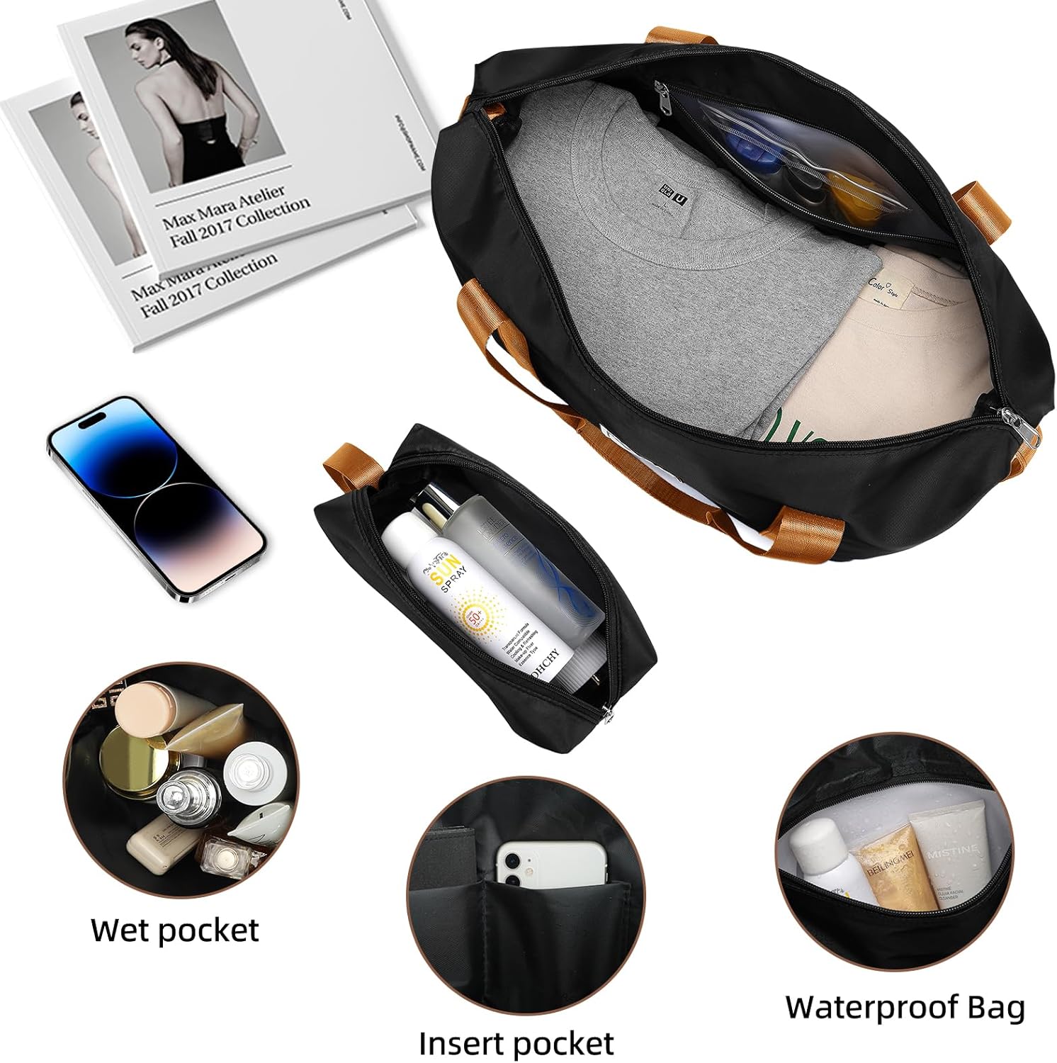 - 【Multi-functional Weekender Bag】The travel duffel bag is made of polyester fabric, which is mildly water-resistant. The duffel bag is also designed with a back sleeve, so you can conveniently attach it to the retractable luggage handle.
