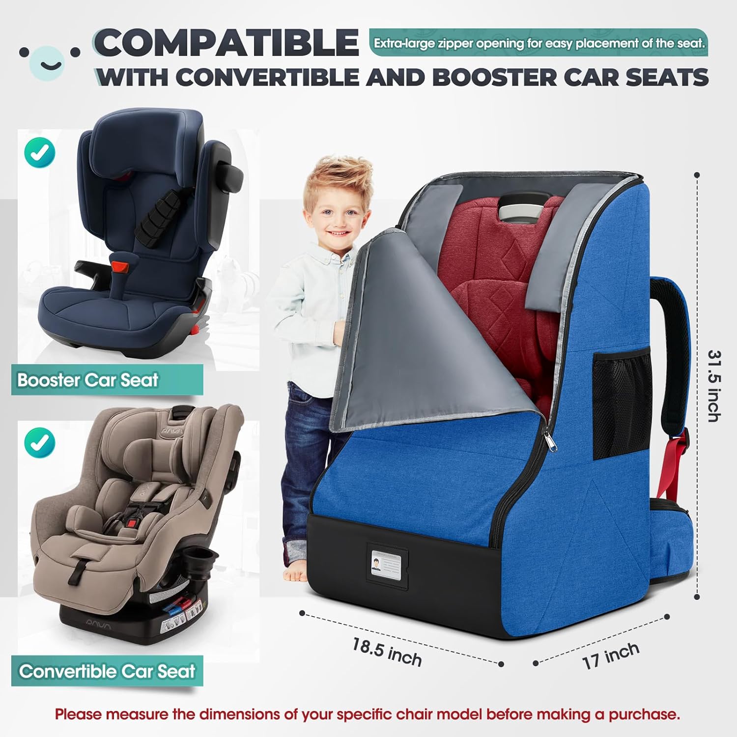 - Ideal for Travel: The car seat backpack travel bag makes it easy to take a baby car seat on trips or outings. The versatile travel car seat bag ensures the safety of baby car seats, toddler car seats, and booster seats, saving on extra luggage fees and car seat rental costs, allowing for hands-free carrying so you can focus more on young children, pulling luggage, or pushing a stroller. It is an ideal gift for parents, fathers, mothers, men, and women traveling with babies.