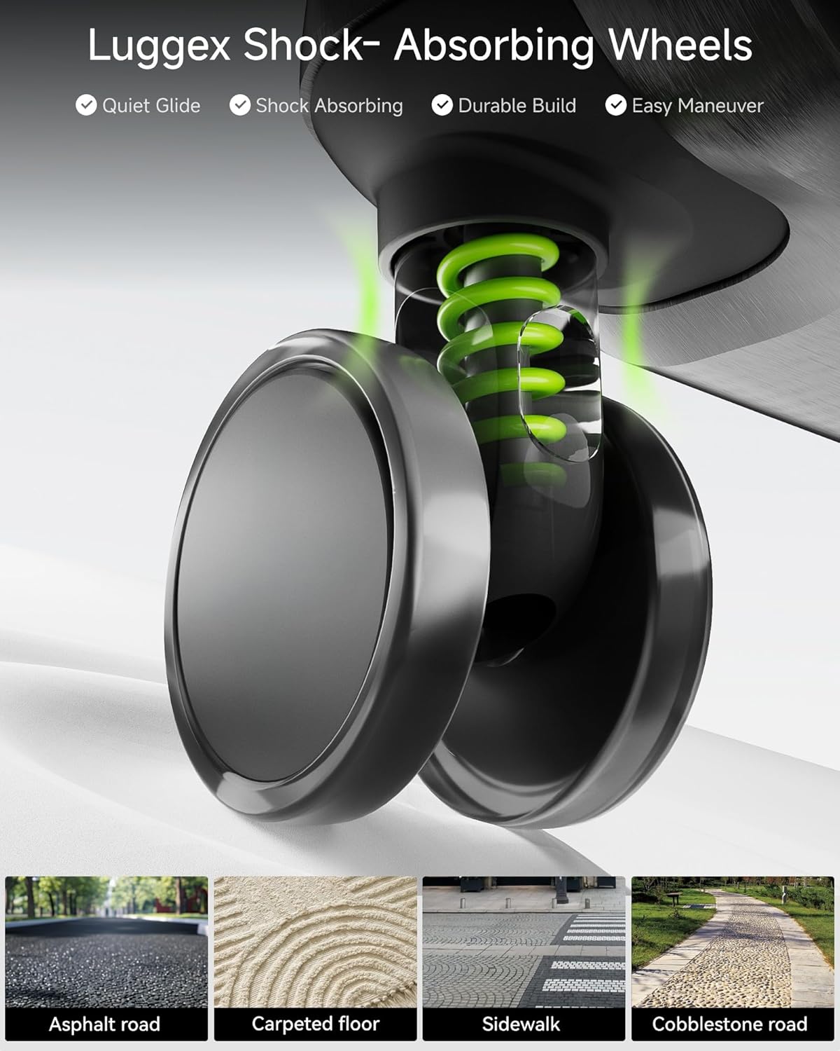 - Spring-Loaded Wheels for Smooth Travel: Built-in spring system absorbs shocks, reducing bumps and noise while gliding smoothly across various surfaces. Durable, silent, and easy to maneuver, this is a 28 inch luggage with spinner wheels that works well through airports, streets, or uneven terrain.