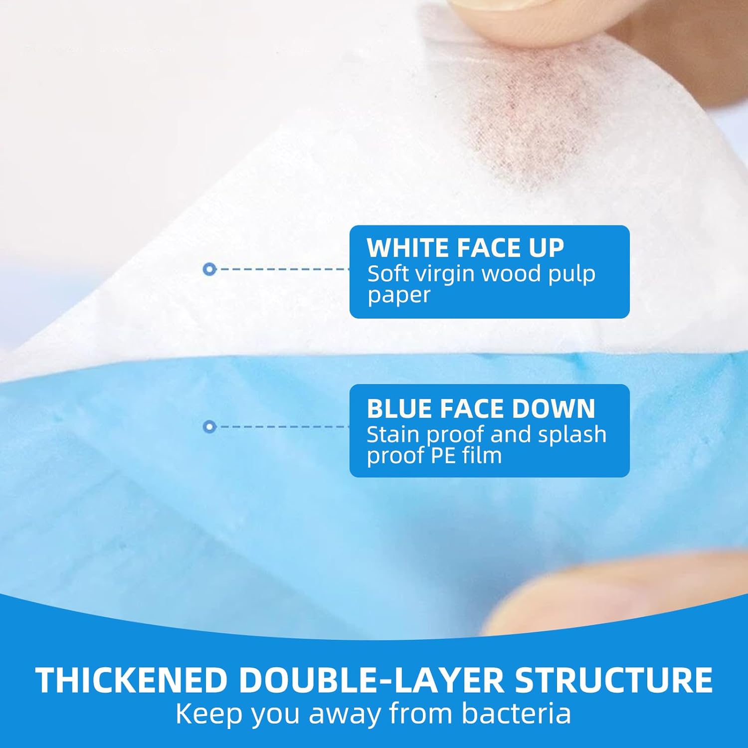 - 【Soft Cotton Middle+ Waterproof Backing】 In the middle of the toilet seat cover is a layer of pure cotton, which is very comfortable to use. 100% cotton top feels clean and comfy; PE membrane blocks moisture & dirt. Hygienic disposable toilet seat cover for public use, portable setups, and toilet seat covers for bathroom at home.