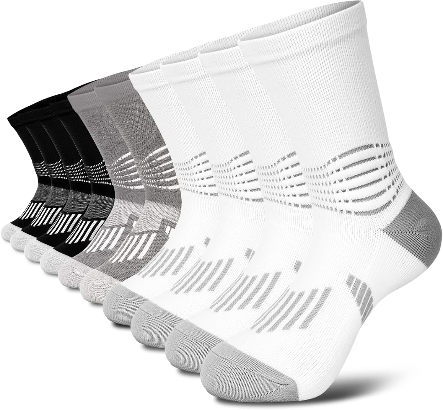 - Improved Blood Circulation & Recovery:The moderate compression technology in these compression socks promotes healthy blood circulation in your feet and calves, which can speed up recovery after workouts . This targeted support is also designed to help alleviate discomfort associated with plantar fasciitis and minimize swelling , making them ideal for all-day wear and sport use.