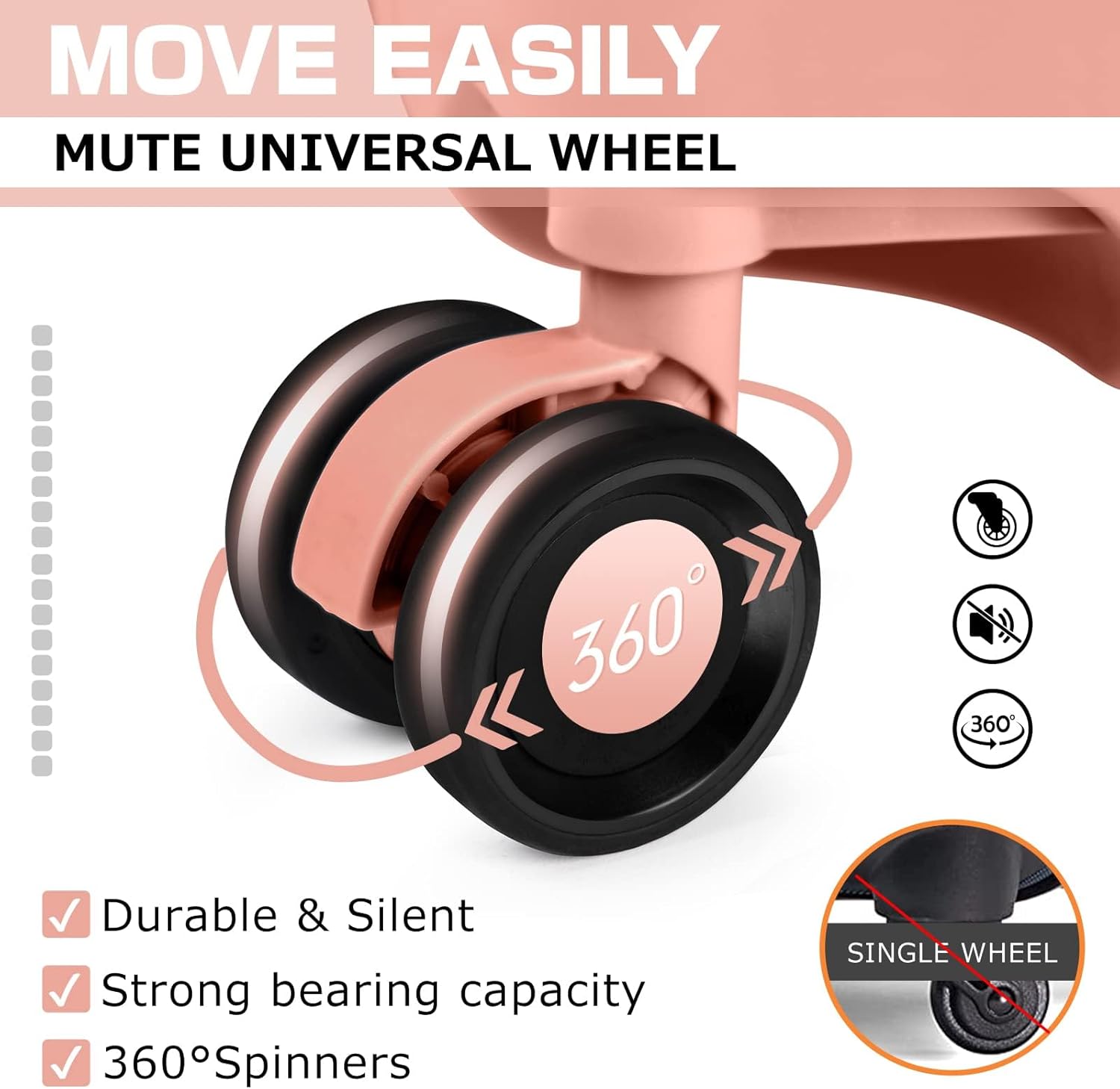 - 【360°Spinner Wheels】 The 4 multi-directional swivel wheels distribute the weight of your luggage evenly, ensuring an easy glide through a busy airport or train station, quietly and smoothly. The double wheel design is more durable.