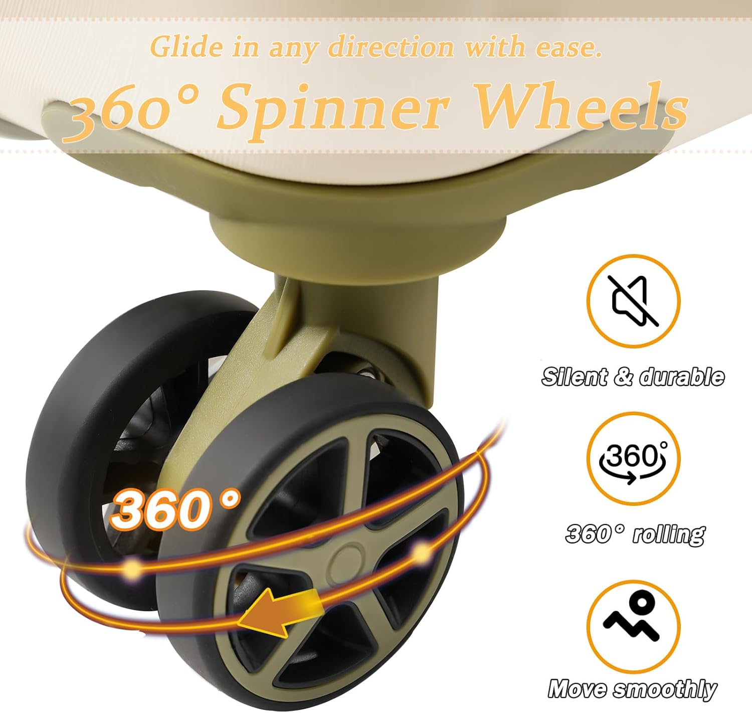 - [360° Spinner Wheels] The suitcase with dual wheels is carefully designed to move smoothly and discreetly across all terrains. Large storage space and fully lined interior with zippered compartment to keep your items organized.