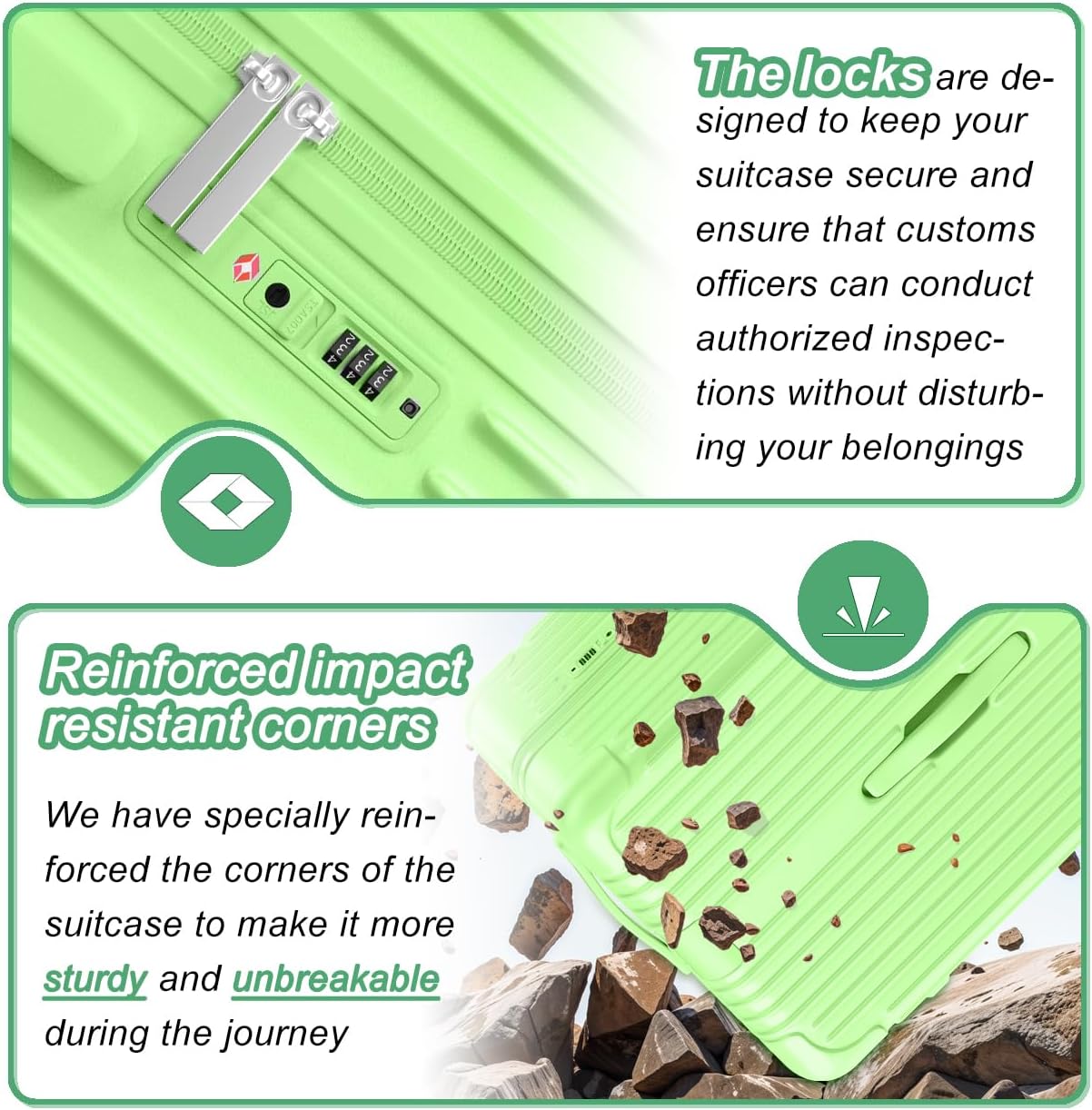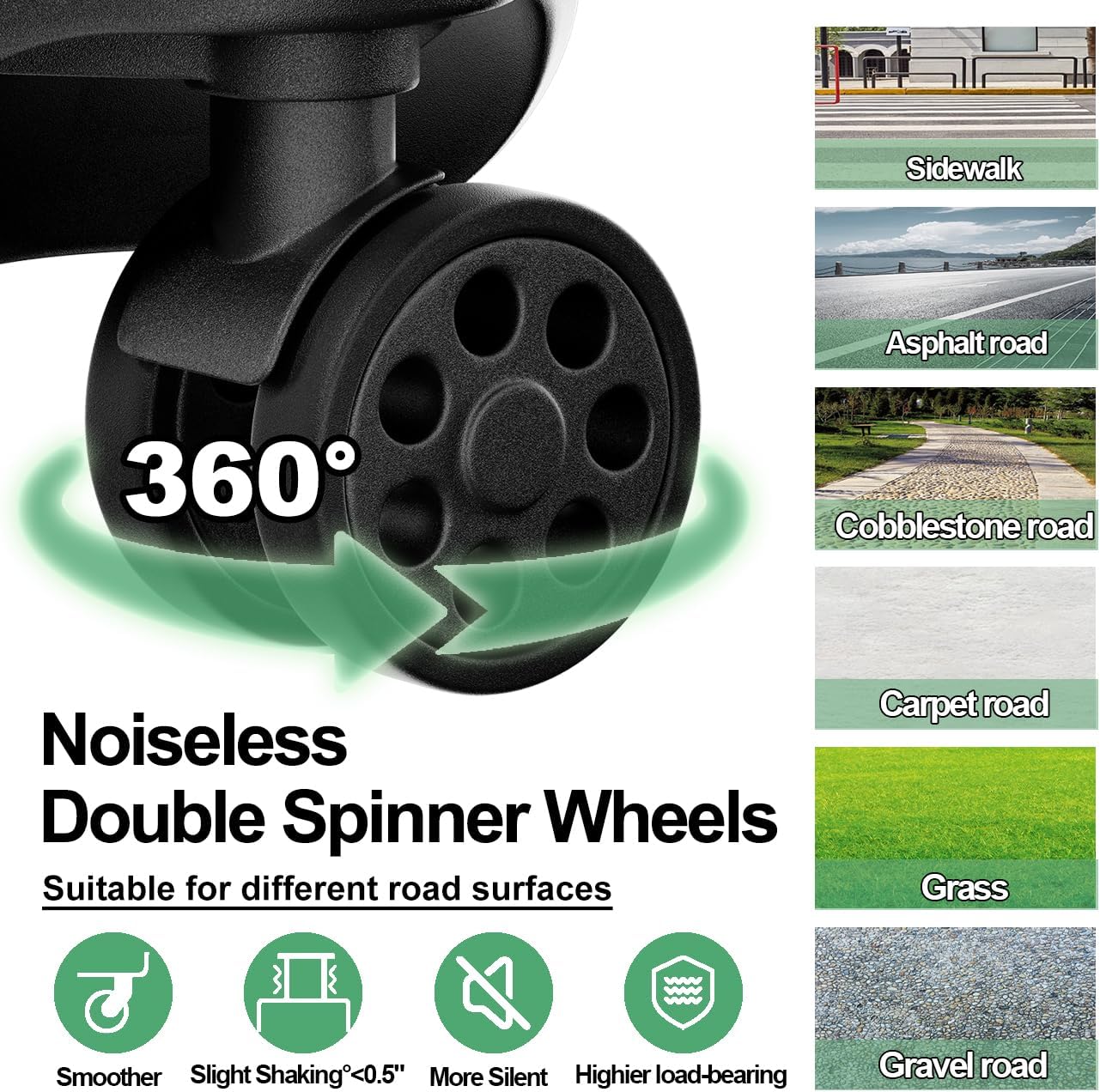 - 【360° Spinner Double Wheels】Glide through your adventures with grace using the 4 Universal Wheels mounting spinner luggage. And it get benifits from PC+ABS hard shell that makes it solid and anti-scratch,keeping your suitcase intact on your short trips