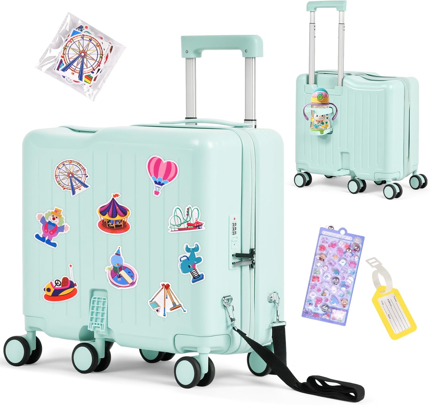 - 【Lightweight Yet Durable】 Made from premium PC+ABS material, this kids’ ride-on luggage is lightweight and easy for children to roll or sit and ride. The scratch- and impact-resistant shell protects belongings from drops or pressure and stays sturdy and new trip after trip, making it an ideal travel companion for toddlers and children.