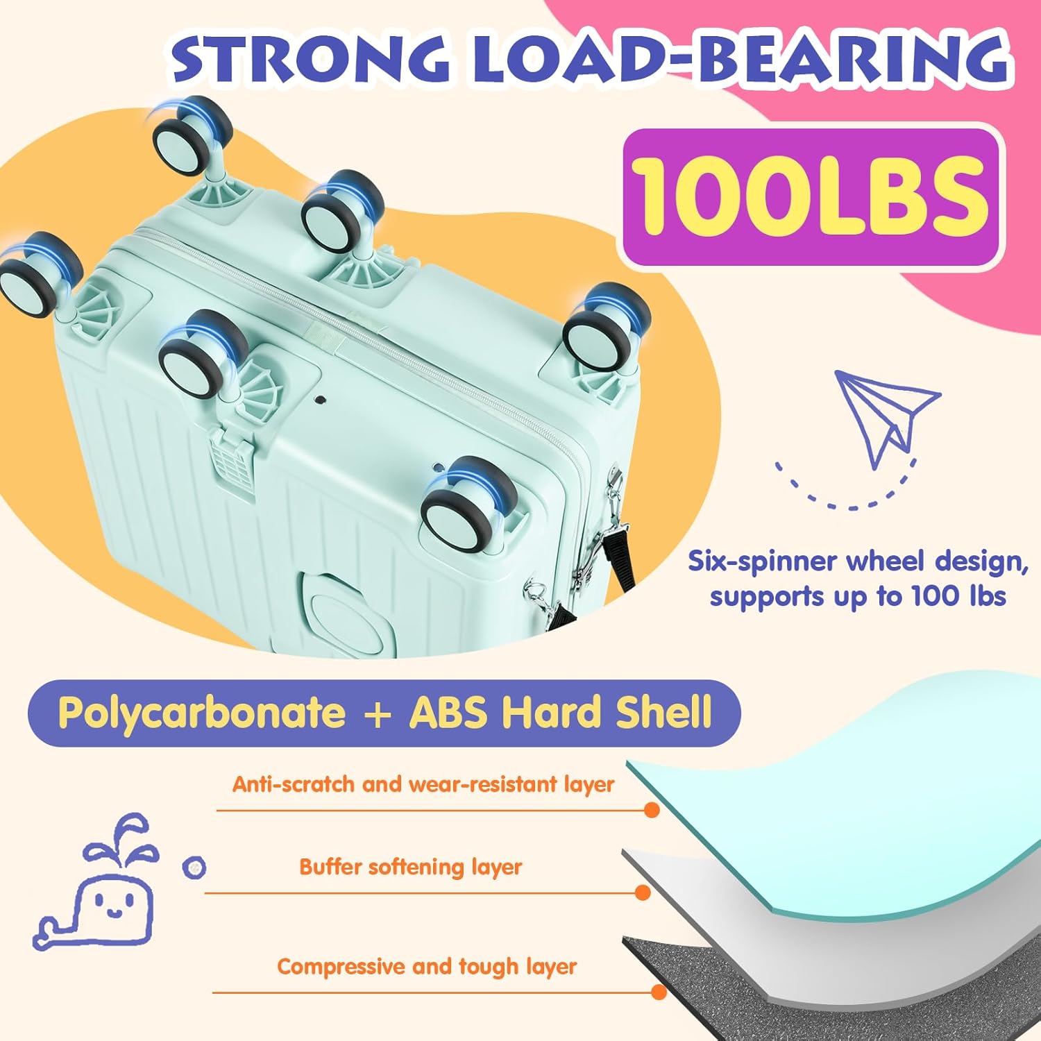 Kids Ride-On Luggage, 20" Hardshell Carry-On Suitcase with 6 Spinner Wheels, Foldable Pedal, Hidden Cup Holder & Combination Lock for Toddlers & Children (Green, 20-inch)