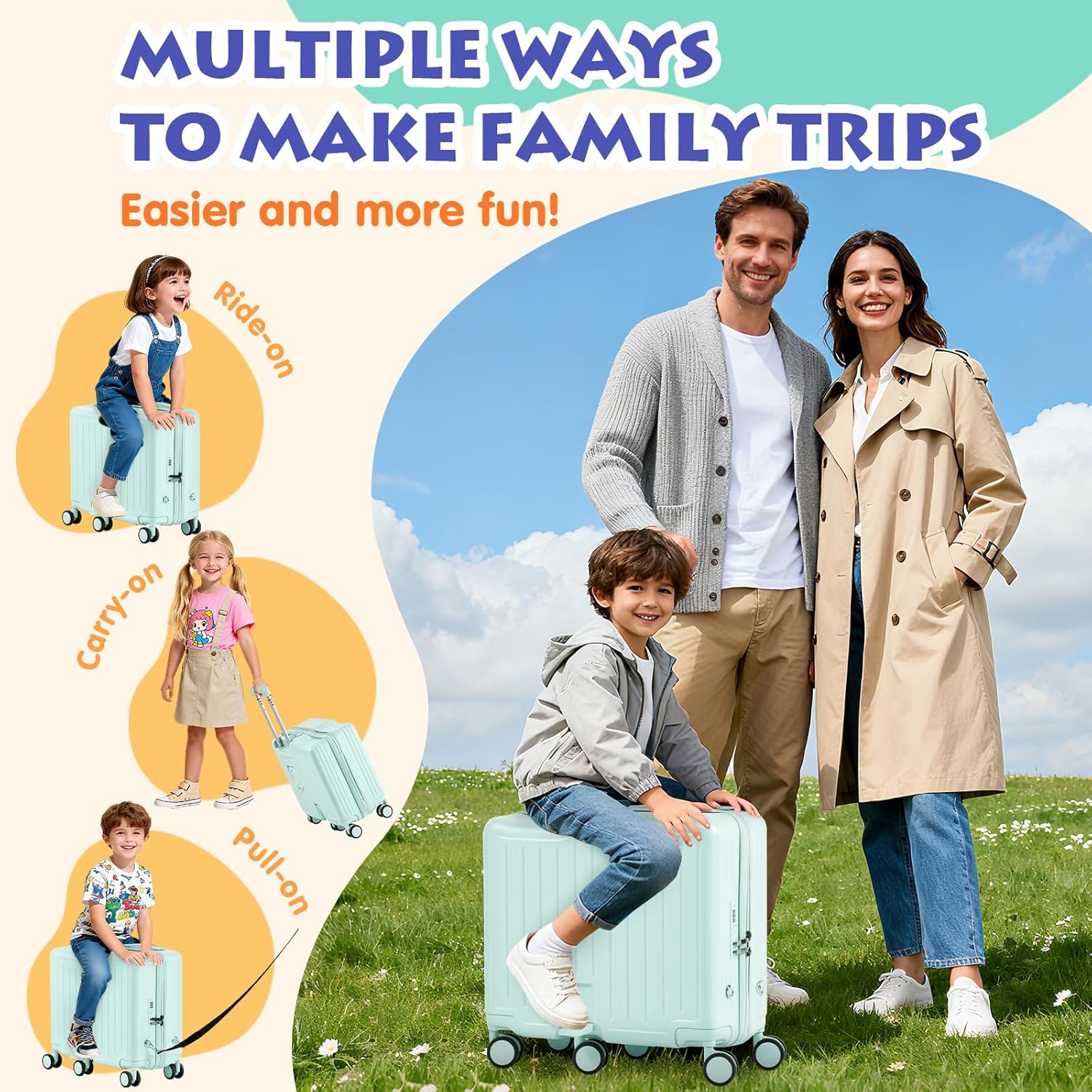 - 【Carry On Size】 Measuring 20 x 9 x 18 inches, this 20-inch kids’ ride-on luggage meets most airlines’ carry-on requirements. Perfectly sized for family trips and international travel, it carry on hassle-free packing and convenient transport for young travelers.