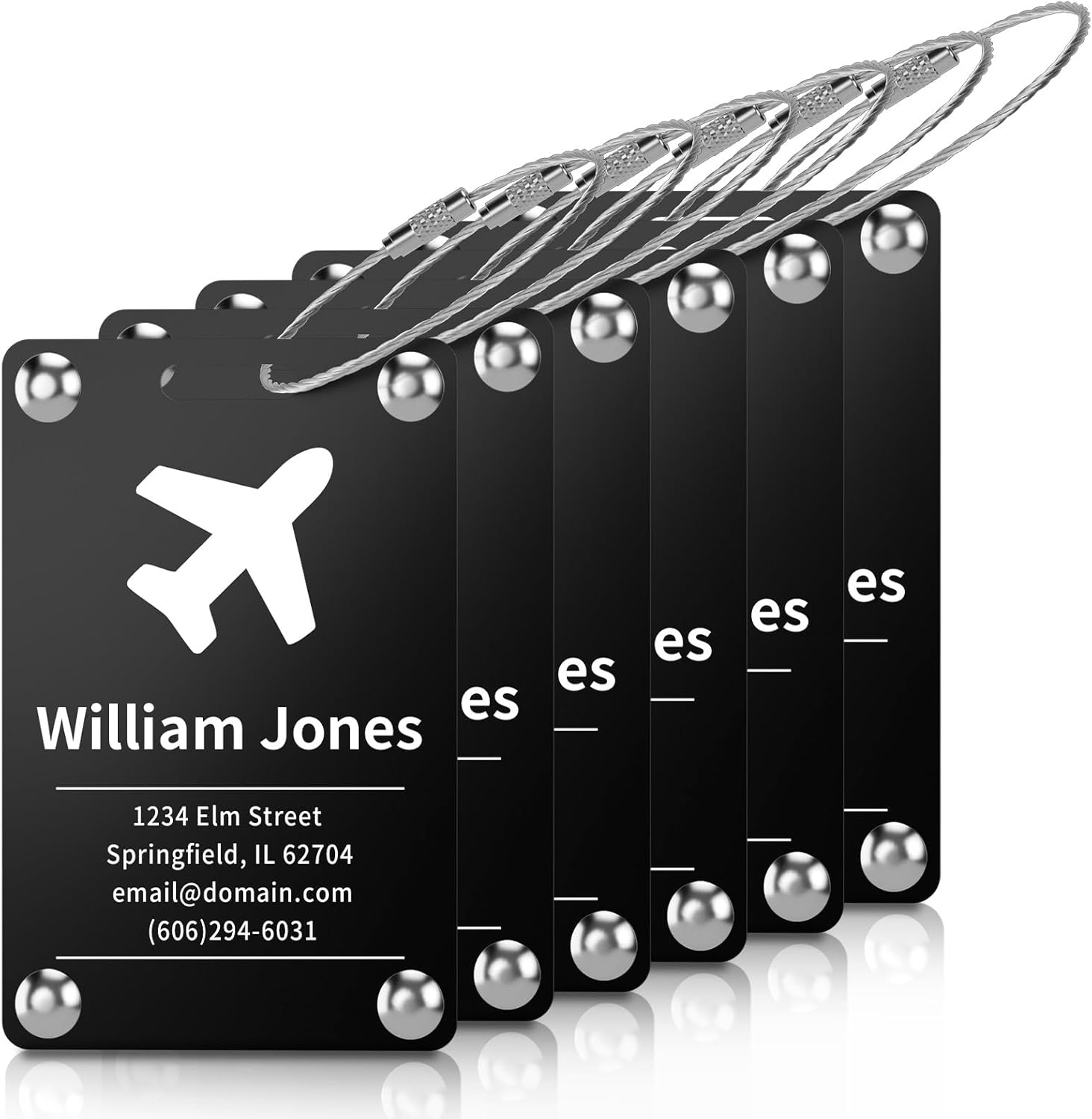 - DURABLE TRAVEL TAGS FOR LUGGAGE: Measuring 3.35" x 2.17", these metal luggage tags are crafted from stainless steel with a smooth finish, resistant to wear and tear. Each comes with a sturdy steel loop, ensuring your name tags for luggage stay firmly attached during flights, cruises, or daily commutes.