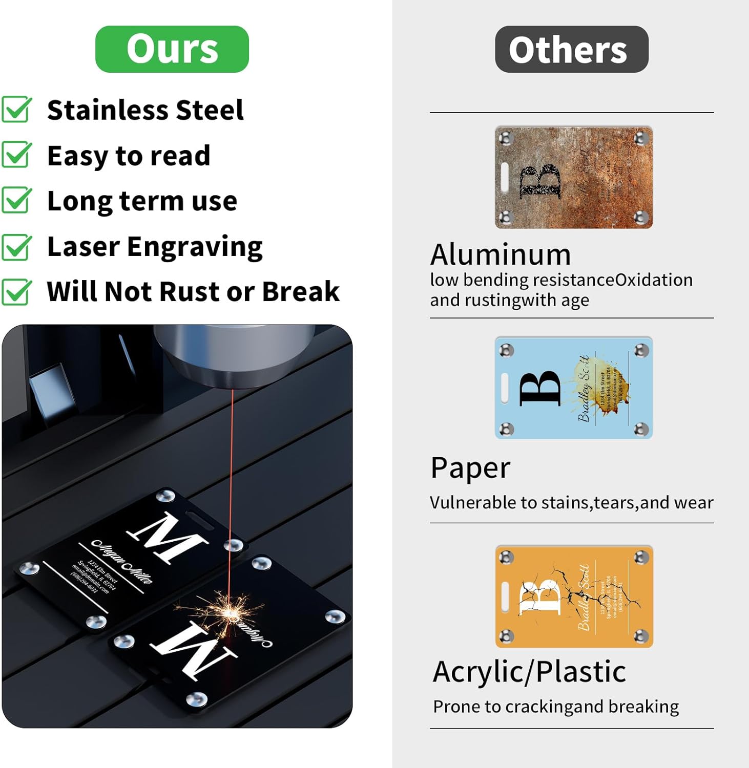 - EASY IDENTIFICATION IN SECONDS: Laser engraving delivers permanent, easy-to-read lettering that never fades. Ideal for custom luggage tags or luggage tags bulk orders, they provide instant recognition for individuals, families, or travel groups.