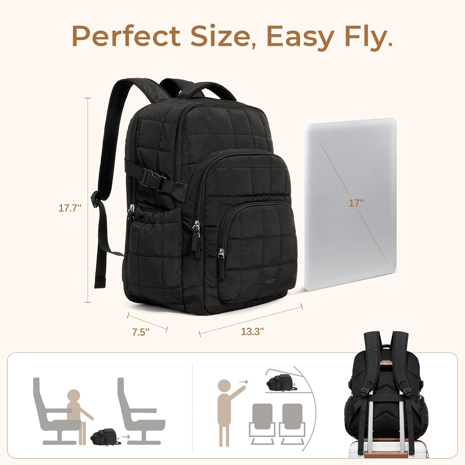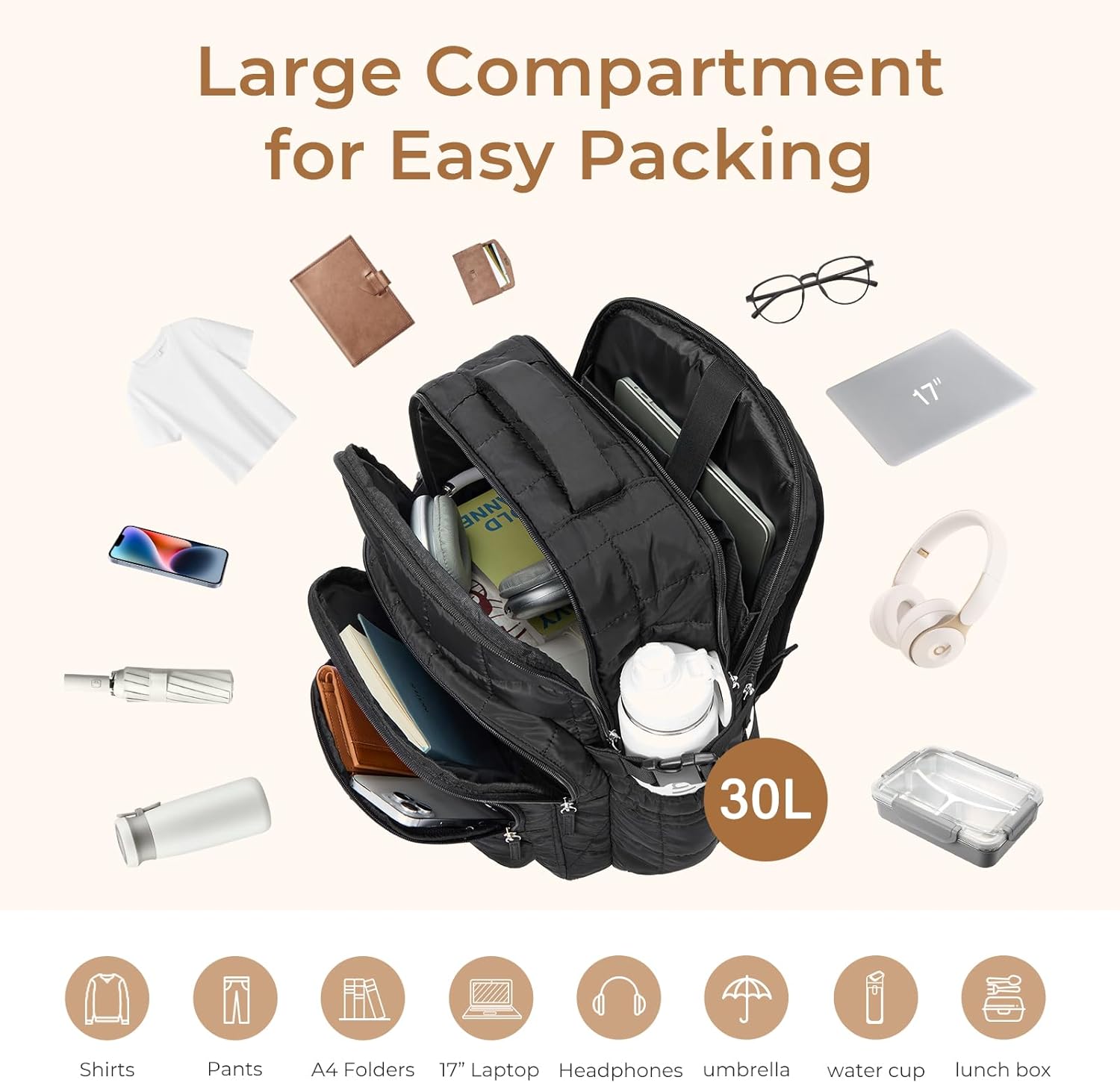 CLUCI Wrinkle-Resistant Laptop Backpack for Women, 17.3 Inch Anti Theft Travel Backpack, Puffer Quilted Work Backpack, Water Resistant College Bookbag with RFID