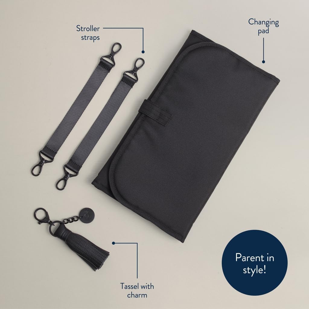 - ELEGANTLY MODERN, CLASSICALLY CHIC: Elevate your style with our western Boss Plus design. This exquisite diaper backpack features a removable vegan leather accent tassel adorned with an engraved chain link charm, adding a dash of sophistication to your ensemble. Our Boss diaper bags are so stylish that they can also be used as work bags, gym bags, or carry-ons while traveling, extending their utility long after your baby has outgrown diapers.