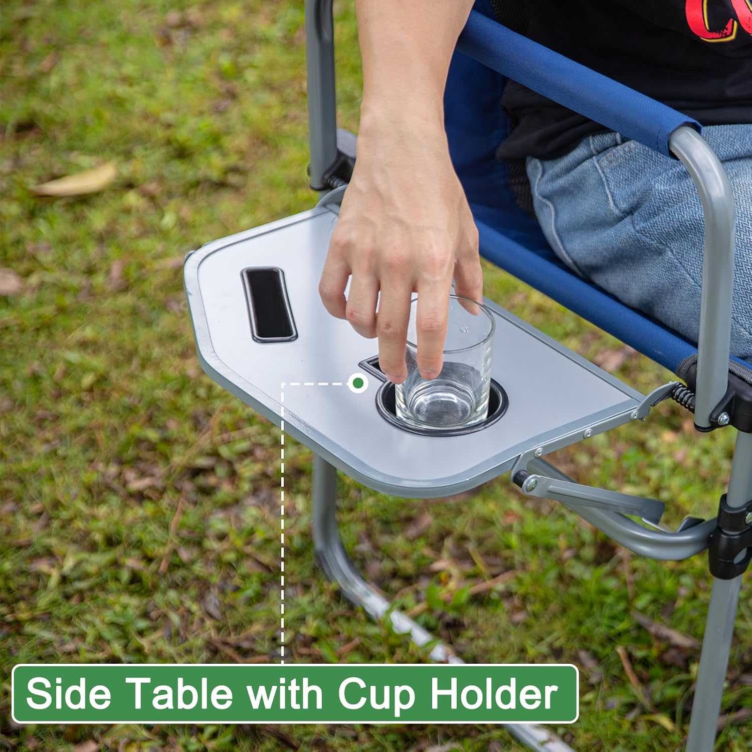 Romswi 2PK Folding Director Chairs, Camping Chair for Outdoor, Compact Directors Chair with Side Table Side Bag, Heavy Duty Oversize Seat for Beach Fishing Picnic Chairs, Holds up to 300 lbs Blue